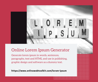 Onlinewebtoolkit onlinewebtoolkit.com › lorem-ipsum Lorem Ipsum Generator for Typographic Text Lorem Ipsum Generator · Real Content Generator · E-mail Address Generator · Credit Card Generator · Secure Password Generator · Random Number Generator · Encoder / Decoder · Base64 Encode · Base64 Decode · URL Encoder & Decoder · Morse Code Translator · Password Hash Generator · MD5 Hash Generator · SHA1 Hash Generator · SHA256 Hash Generator · SHA512 Hash Generator ·